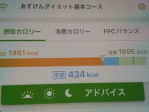 あすけんでの摂取カロリーも、許容範囲内だね。